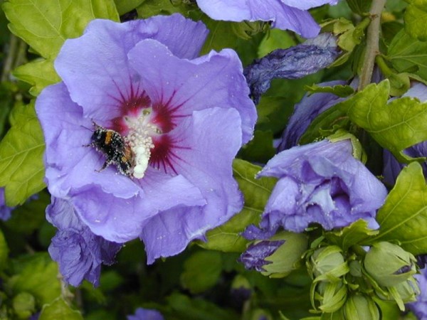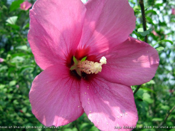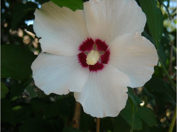 Arbust exotic, 3 m, cu tulpina ramificată de la bază, sub formă de tufă. Scoarţa este netedă la început, cenuşie, apoi negricioasă, fin crăpată. Lujeri tineri acoperiţi cu peri lungi şi moi, apoi glabri, ce se rup greu. Specia este originară din Siria, China, India, la noi fiind introdusă în scop ornamental.